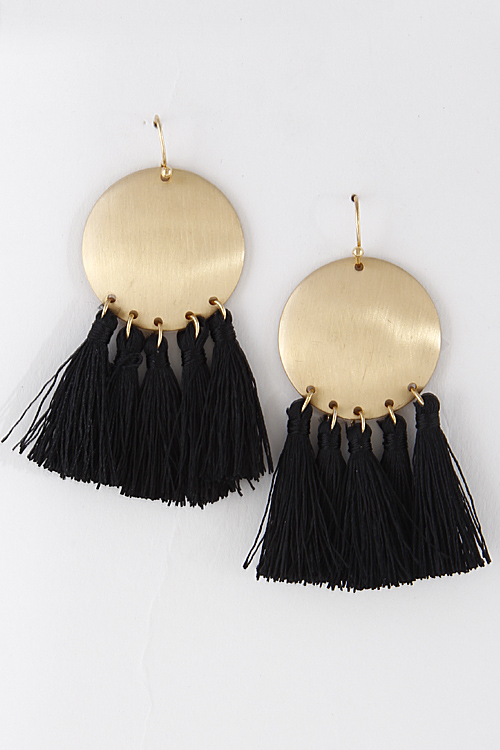 - * Metallic Flat Circle Earrings With Tassel Details 7GBB7
