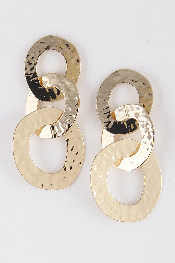 - * Three Linked Circle Hammered Earrings 8JBB3