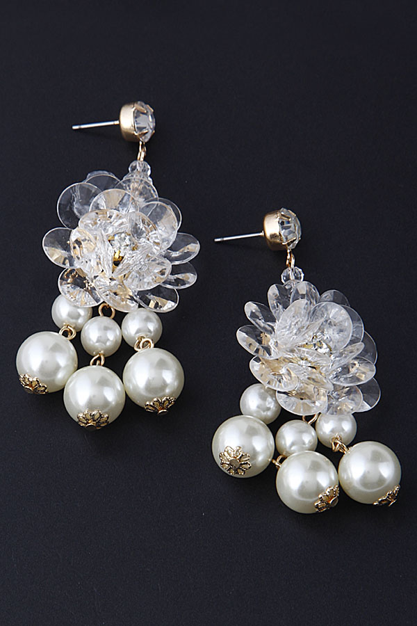 - * Clear Flower Earring With Pearl Drop 8EAC4
