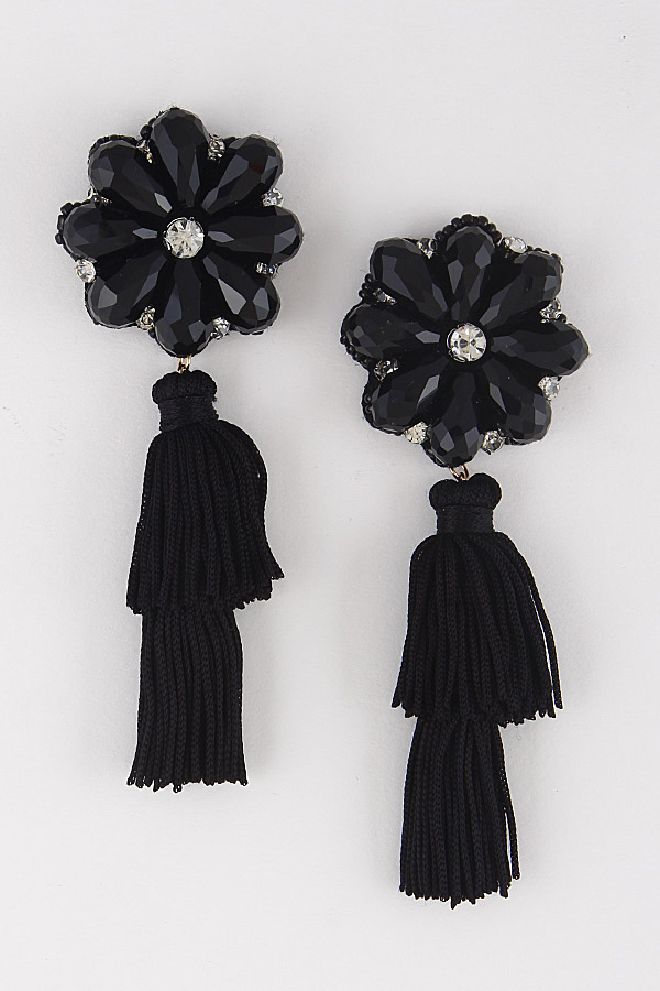 - * Precious Flower Stone Tassel Drop Earrings 8ICB3