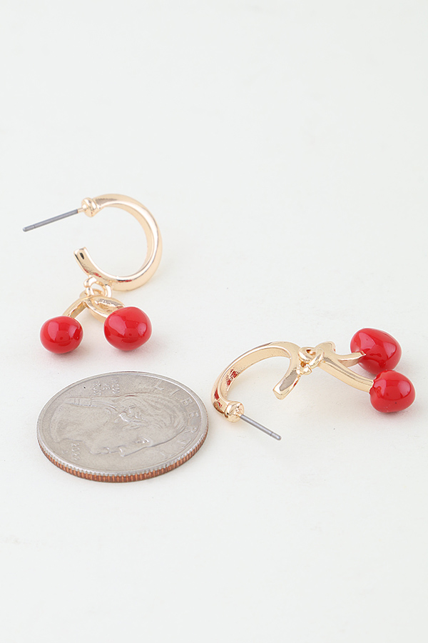 - * These Cute Cherry Hoop Earrings from H&D Accessories are a playful and stylish accessory. They feature small, shiny gold - toned hoops with a charming cherry pendant. The vibrant red cherries, complete with a gold - toned stem and leaf, dangle gracefully, creating an adorable and eye - catching look.