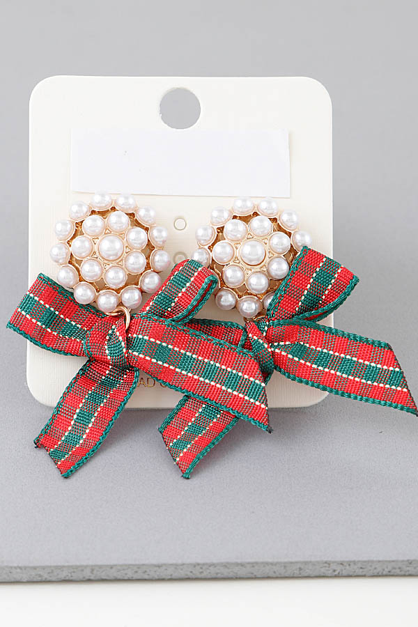 - * Introducing the "Uniform Pearl Ribbon Earrings" from H&D Accessories! These stunning red and green plaid earrings, adorned with delicate pearl, are the perfect accessory to elevate your holiday style. Embrace the spirit of the season and make a statement with these unique earrings that blend tradition and elegance effortlessly.