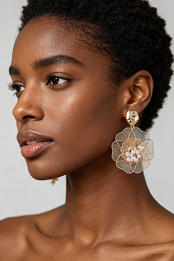 - * These Delicate Mother's Day Flower Earrings from H&D Accessories boast an intricate filigree floral design with a textured, irregular stud top and a cluster of petite beads at the flower's center, blending intricate craftsmanship with a soft, feminine aesthetic perfect for gifting or wearing to spring celebrations, bridal showers, or heartfelt holiday gatherings.