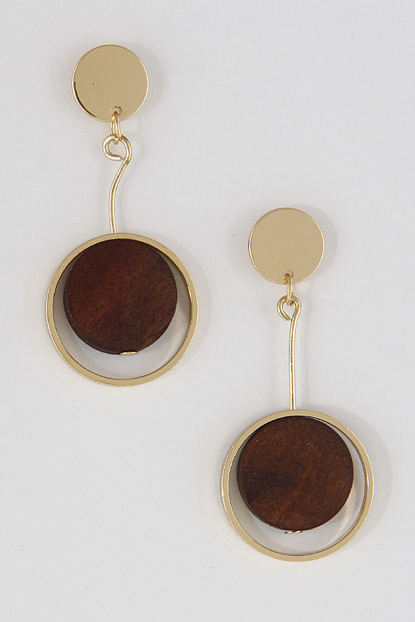 - * Metallic Fashion Earrings With Wood Details 7HCC9