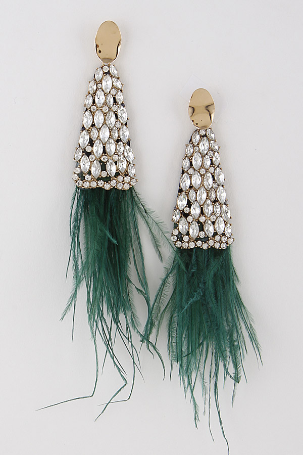 - * Feather Rhinestone Drop Earrings 9IBD9