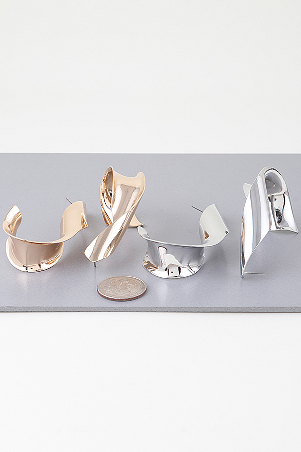 - * Introducing the "Gilded Twists" – a stunning pair of gold earrings that embody elegance and sophistication. These Abstract Shiny Twisted Plate Earrings by H&D Accessories are not just accessories; they are a statement of style that will elevate any outfit. Adorn your ears with these exquisite pieces and let your beauty shine.