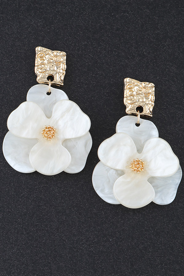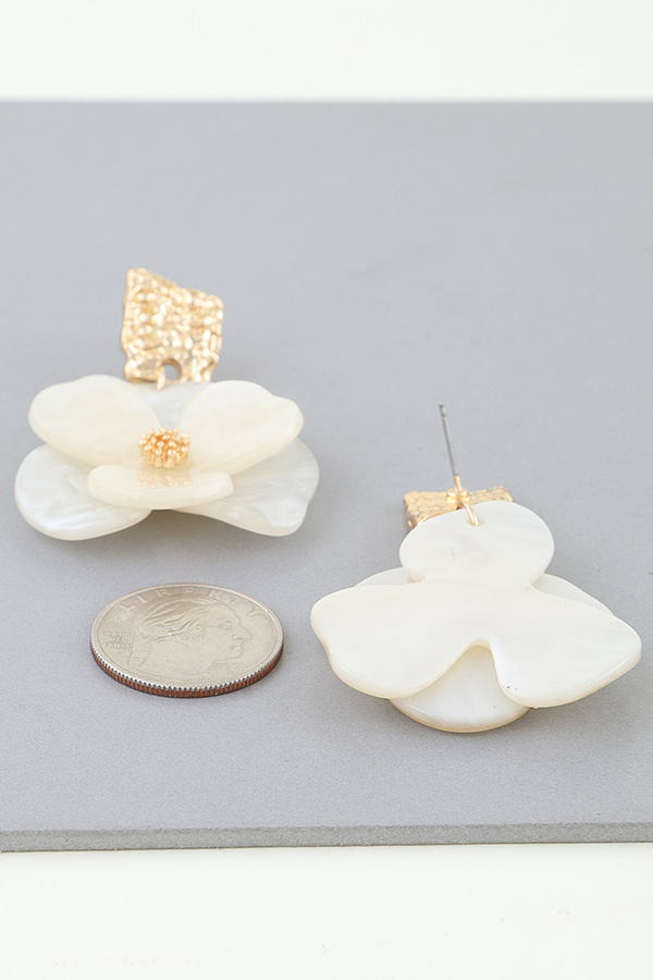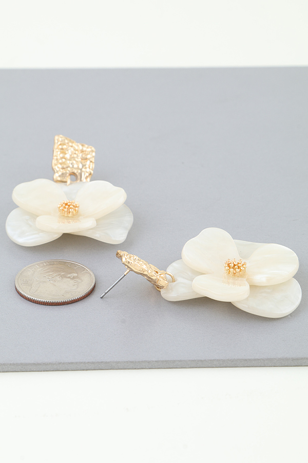 - * These are Marbled Flower Drop Earrings from H&D Accessories. They feature a delicate flower design with marbled - effect petals in a soft white hue, giving them an elegant and natural look. At the center of each flower is a small, golden - toned detail that adds a touch of sophistication. The top part of the earrings is a textured, gold - toned element, enhancing the overall aesthetic. These earrings combine a floral motif with refined craftsmanship, making them a charming accessory.