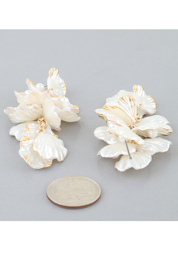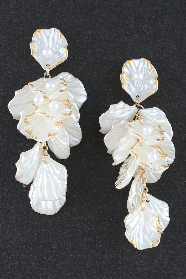 - * These are Multi Petal Blossom Drop Earrings from H&D Accessories. They feature an intricate design with multiple white petals, each adorned with a touch of gold edging and interspersed with small pearls. The petals cascade down in a delicate arrangement, creating a cascading effect. The top petal is attached to the earring post, and the overall design exudes elegance and a floral charm, making them a beautiful accessory for any occasion.