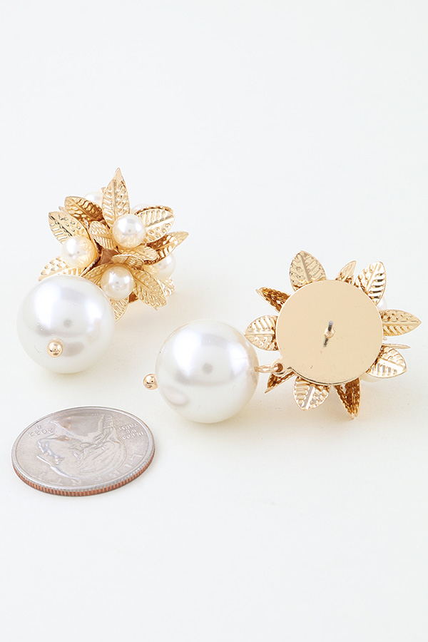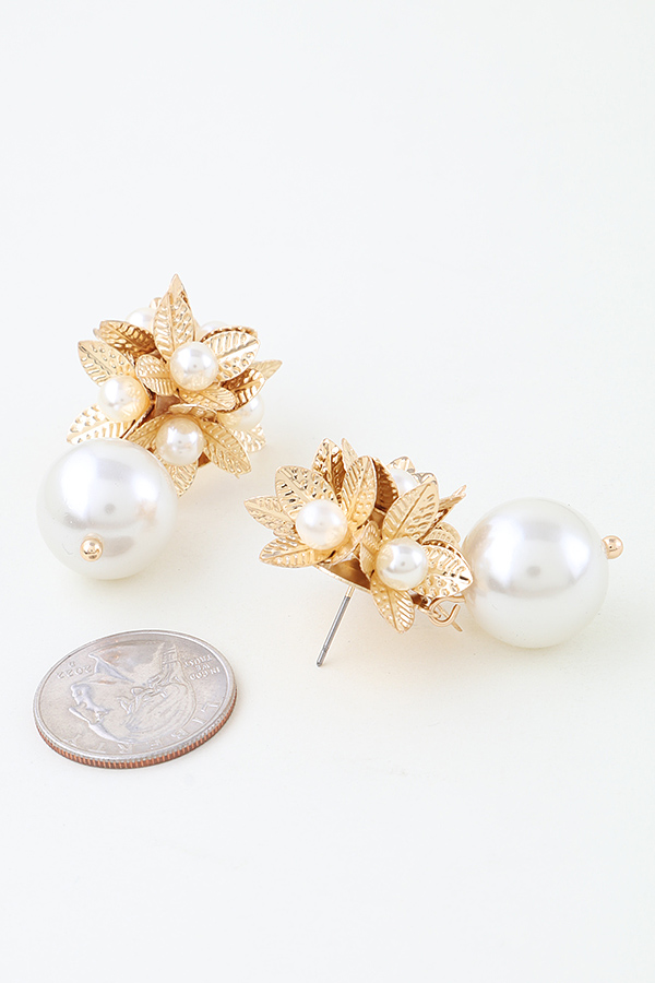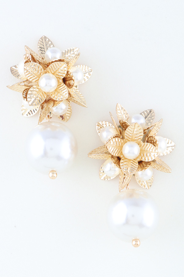 - * These Pearled Blossom Flower Drop Earrings from H&D Accessories are a paragon of elegance. Each earring showcases a detailed gold - toned flower design, adorned with multiple lustrous pearls. The flowers are intricately crafted with textured petals, and a large, prominent pearl dangles below, creating a graceful and eye - catching effect.