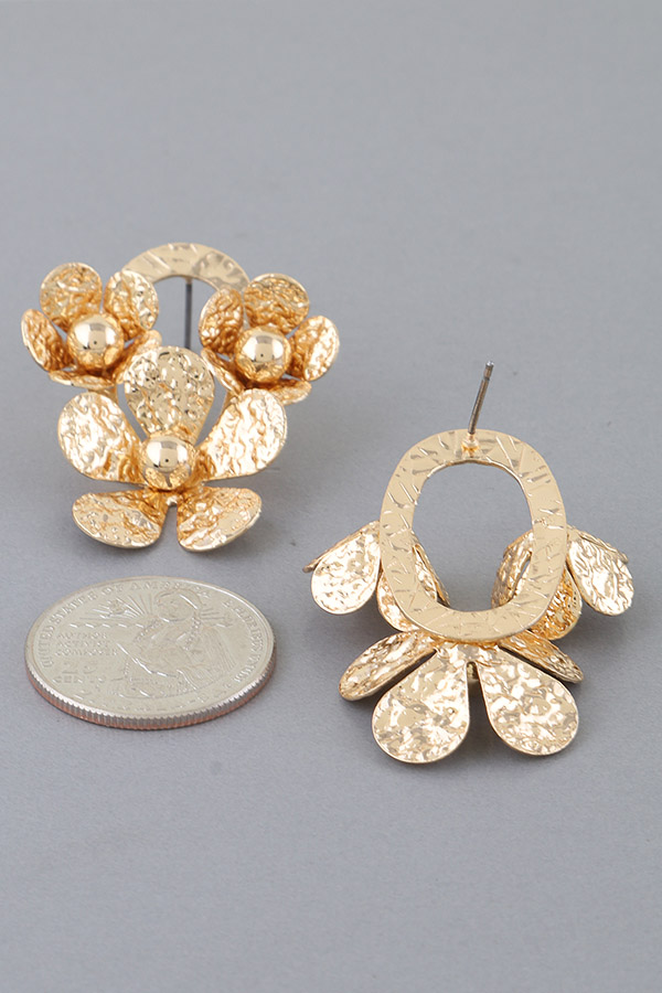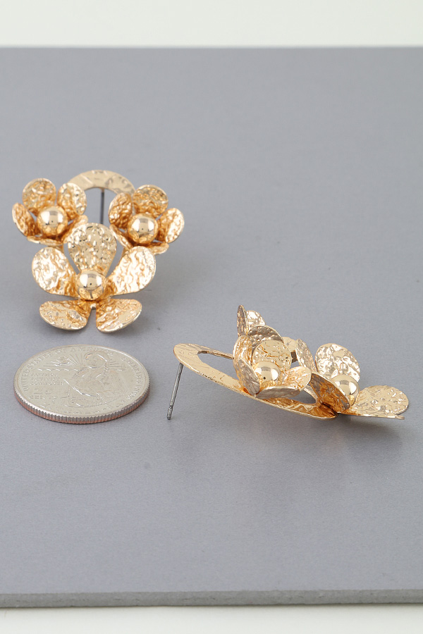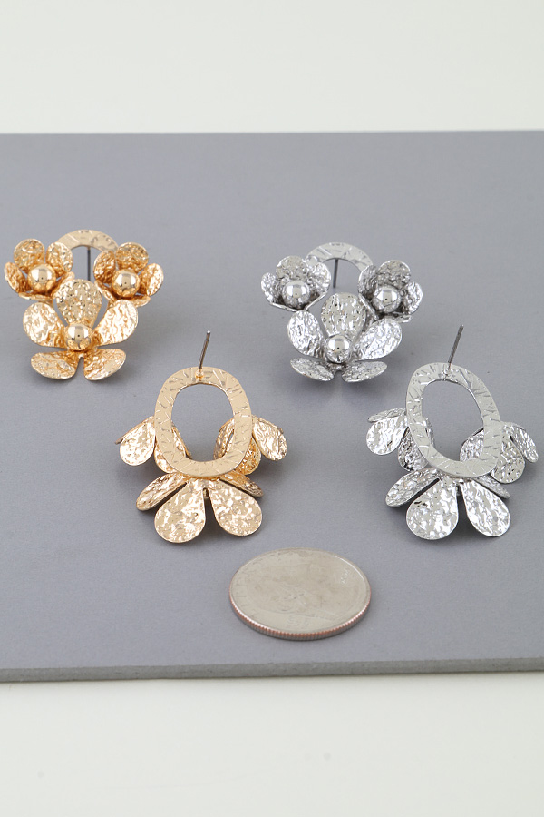 - * These Triple Blossom Oval Earrings from H&D Accessories are a stunning blend of elegance and artistry. Each earring features an oval - shaped top with a textured, metallic finish, from which three intricately designed flowers hang. The flowers are crafted with a shimmering, golden - toned material, and each has a small central bead, adding depth and a touch of sophistication. The overall design is both delicate and eye - catching, making them a perfect accessory for adding a floral - inspired charm to any ensemble.