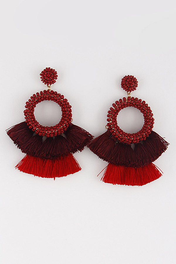 - * Double Tassel & Stone Beaded Earrings 8FBD8