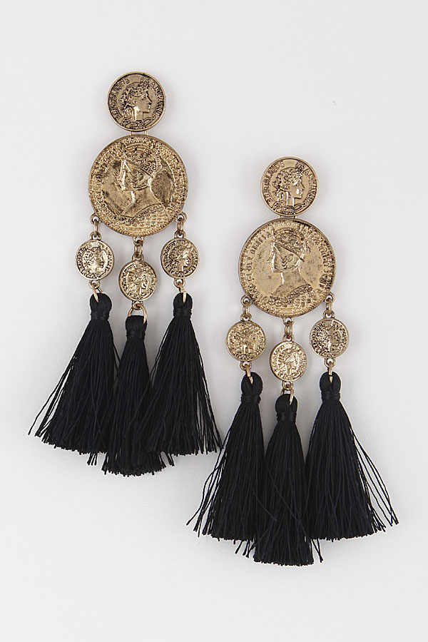 - * Antique Style Coin Beaded Earrings With Tassel 8JAC1