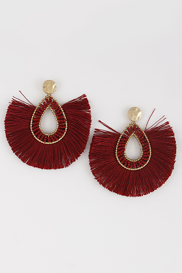 - * Oval Beaded Earrings With Tassel Detail 8ICA2