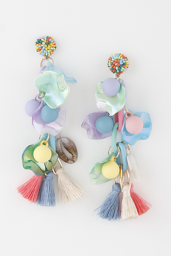 - * Multi Shell Tassel Drop Earrings