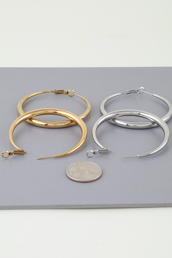 - * These Modern Shiny Crescent Hoop Earrings from H&D Accessories feature large, smooth crescent hoops with a polished finish. The sleek, rounded design creates a bold and modern look, while the secure clasp ensures comfortable wear. Their minimalist yet eye-catching structure makes them a versatile piece that can effortlessly enhance any jewelry collection.