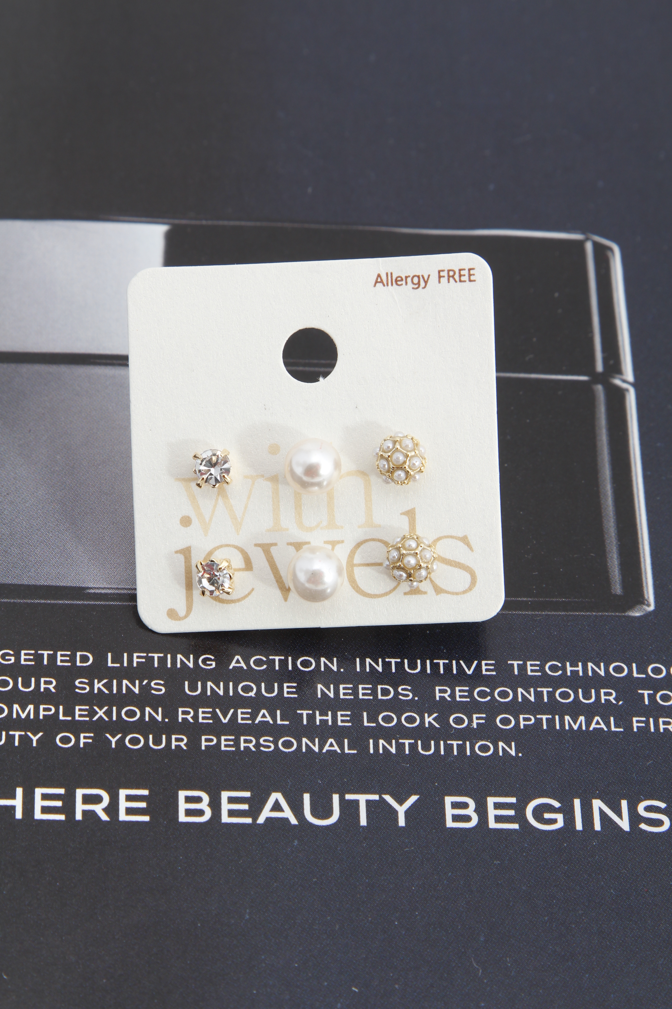 - *Pearl and Rhinestone Cute Earring Set 5LCE7 *0.04 Approx.