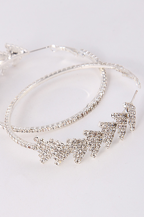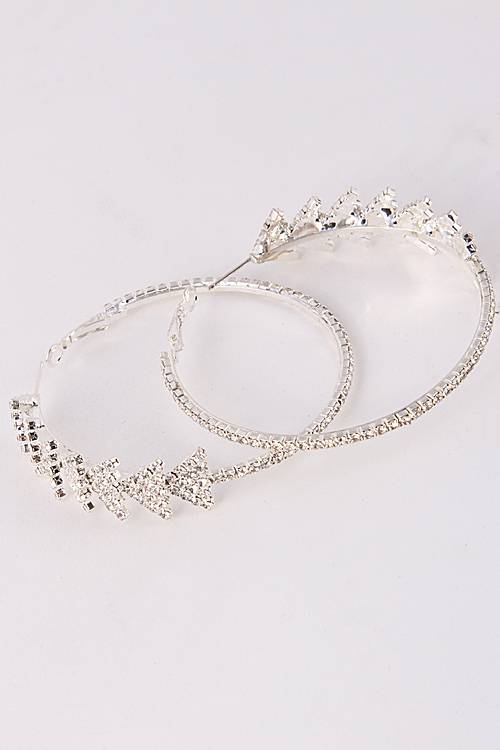 - * Triangle Rhinestone Studded Hoop Earring 5ACA6 * 2.7 x .6" approx.