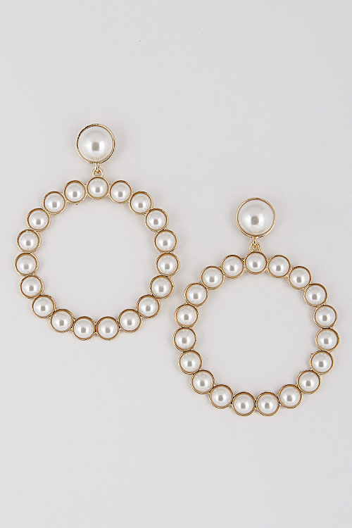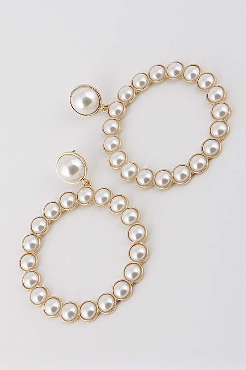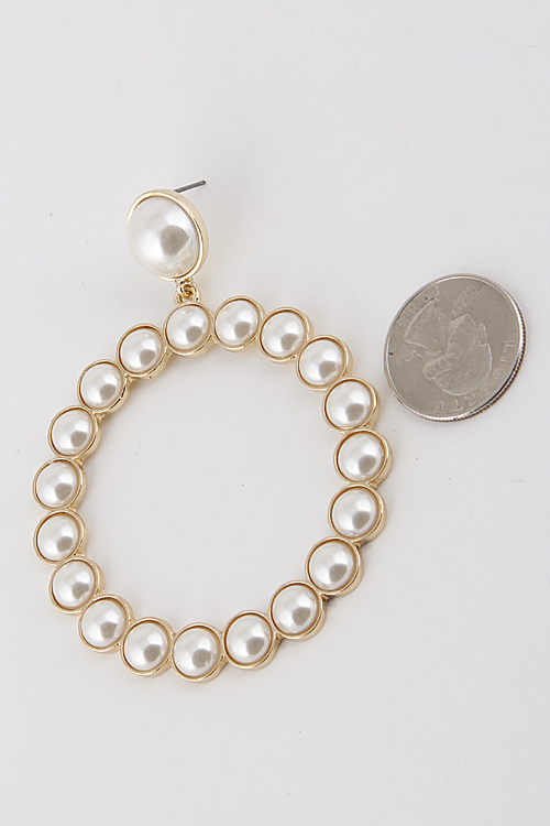 - * Circle Pearl Hoop Earrings 6ABI1 * 2.4 x 3" approx.