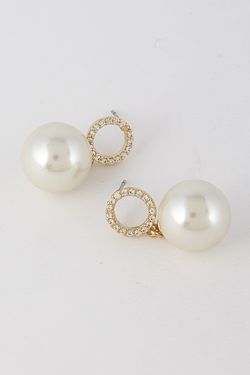 - * Faux Pearl With Circle Rhinestone Earrings 6FCF4 * 0.5 x 1.2" approx.