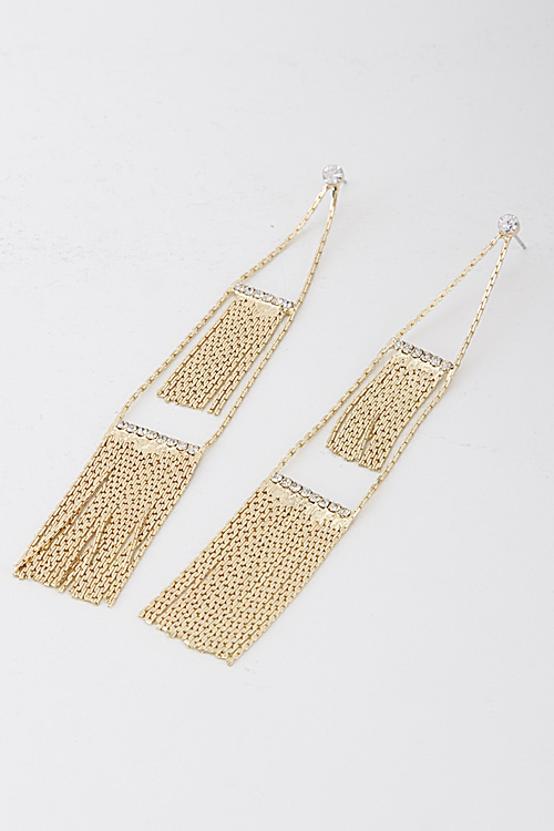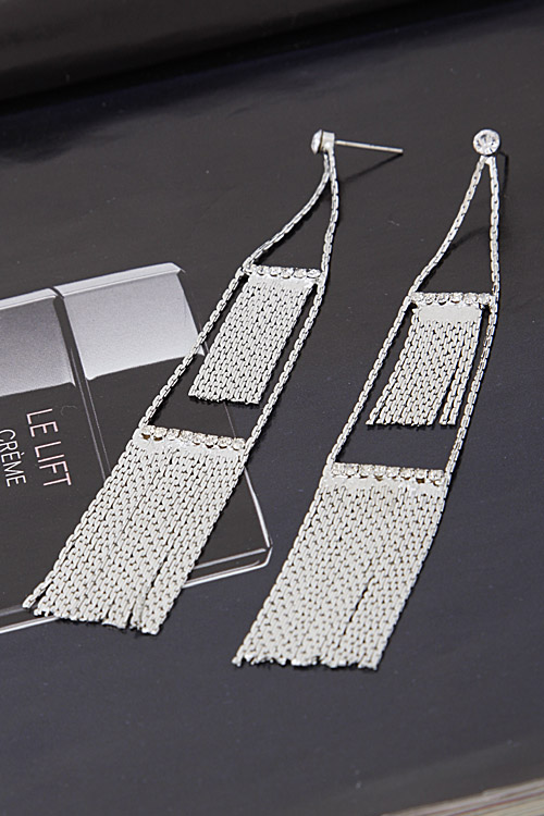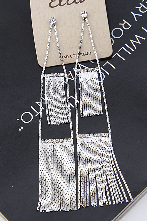 - * Mesh Fringe Rhinestone Earrings 5LBB6 * 4.5" approx.