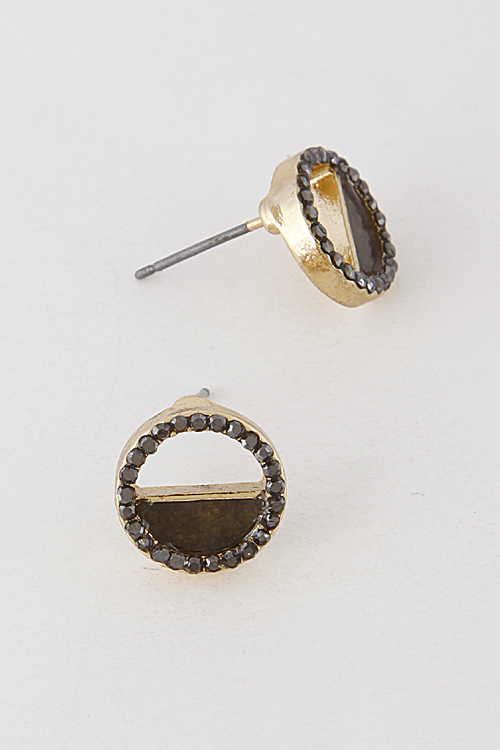 - * Formal Rhinestone Half Stone Earrings 6JBD1 * 0.5 x 0.5" approx.