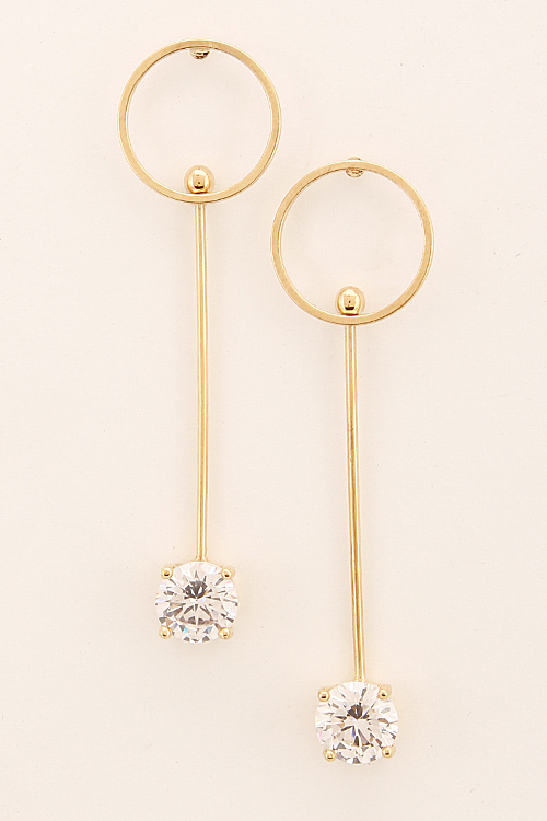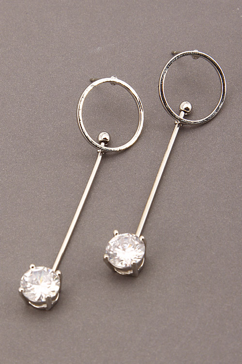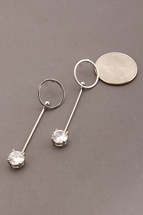 - * Simple Circle Drop Thin Rhinestone Earrings 6CAB9 * 0.6 x 2.2" approx.