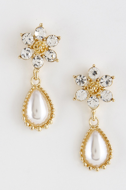 - *Simple Flower Rhinestone Faux Pearl Earring 6FBH1 * 0.6 x 1.8" approx.