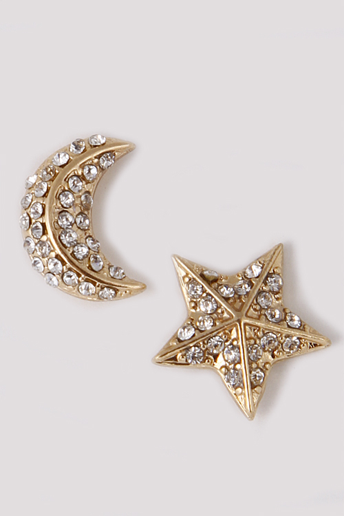 - * Rhinestone Studded Star And Moon Stud Earring 5DBE5 * .25 x .5/ .5 x .5" approx.