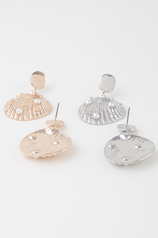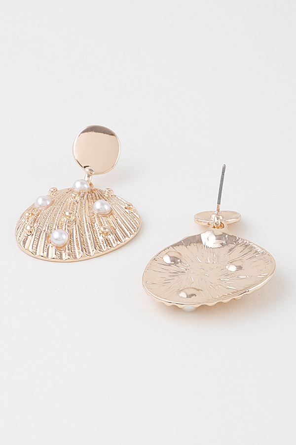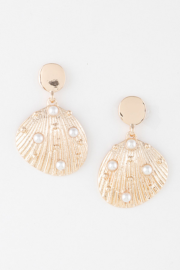 - * Pearled Clam Shell Earrings
