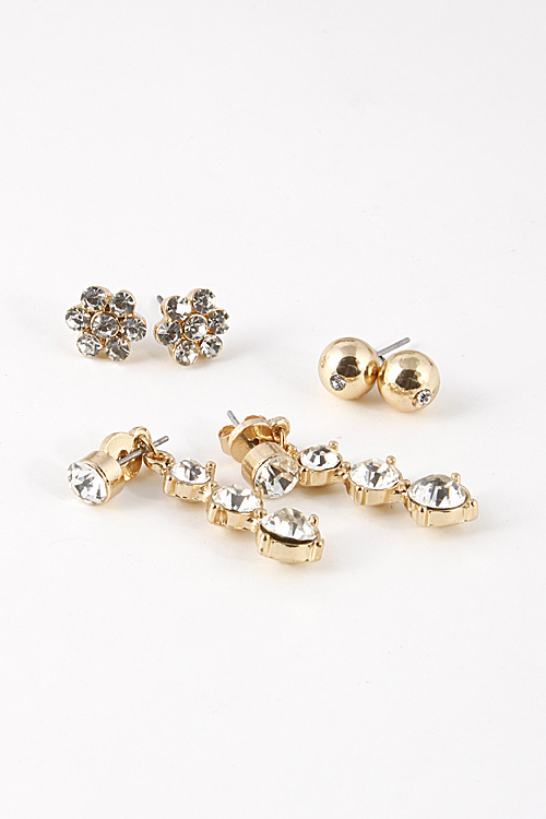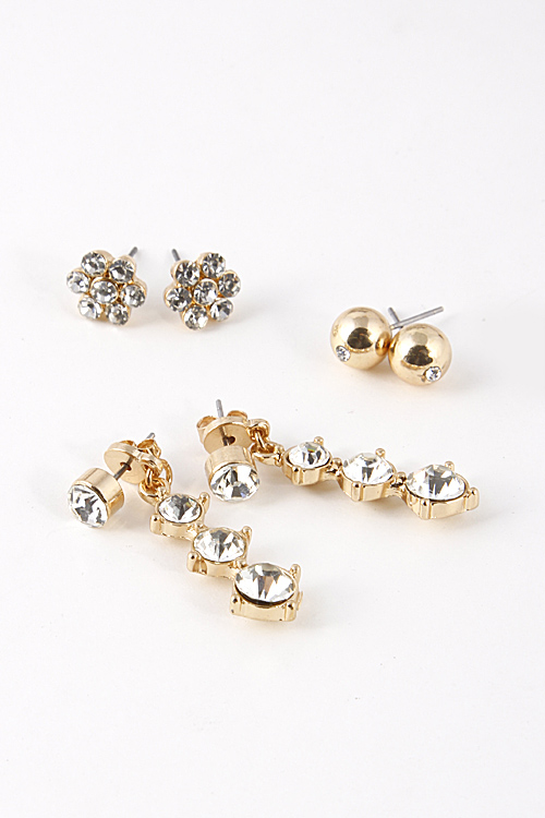 - * Flower Stud Rhinestone Dangle Set Earring 5ACC12 * .4 x .3 x .2" approx.