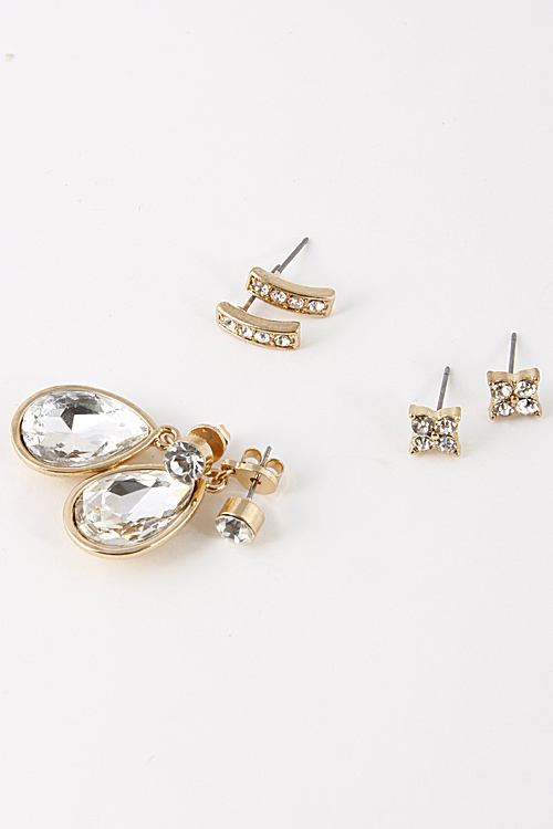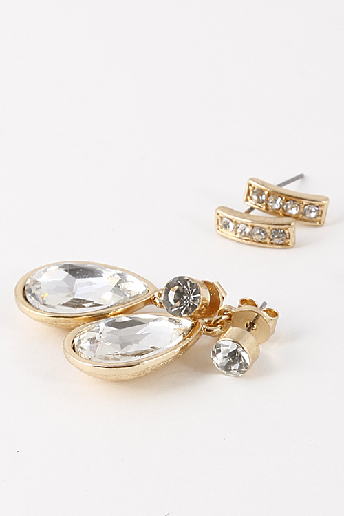 - * Teardrop Rhinestone Dangle Stud Set Earring 5ACC11 * .5 x .3 x .2" approx.