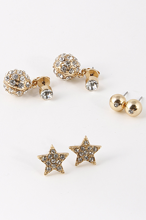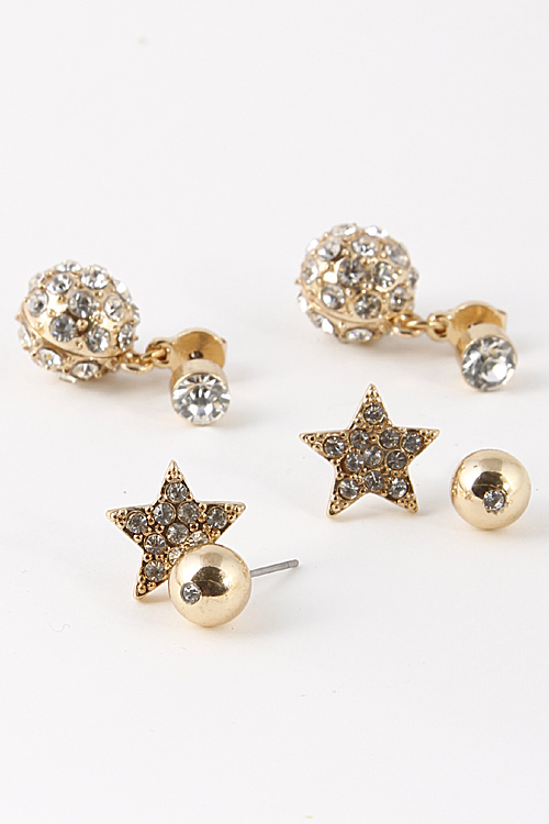 - * Star And Ball Shaped Rhinestone Stud Earring 5ACC11 * .3 x .5 x .2" approx.