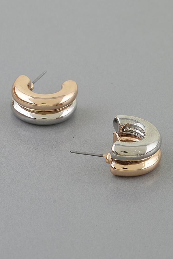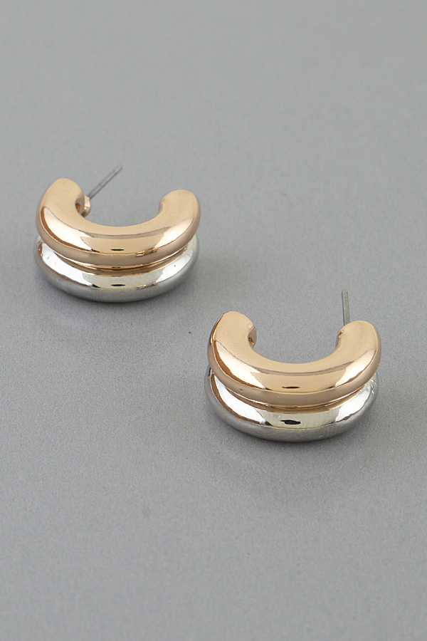 • * Two Toned Curved Hoop Earrings