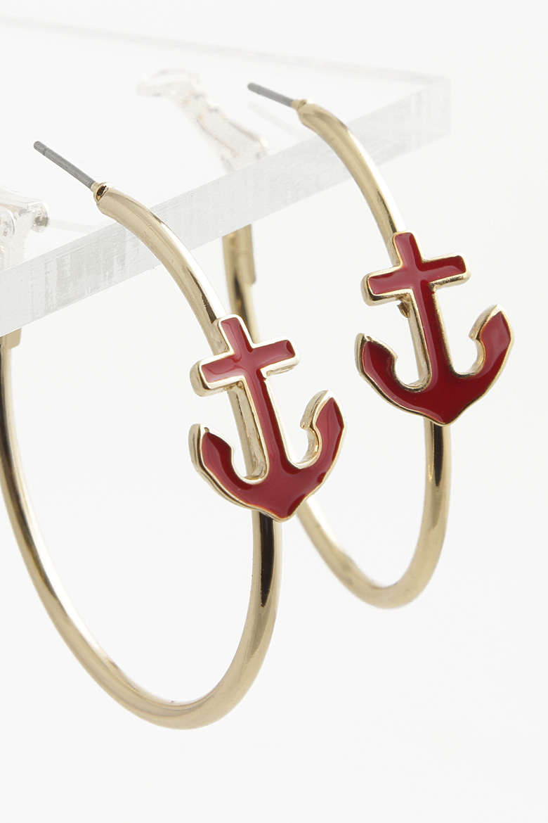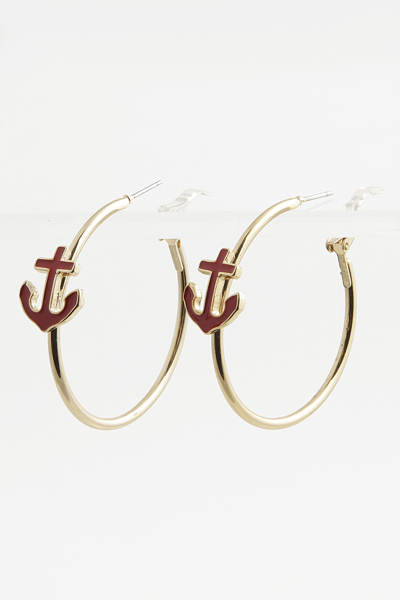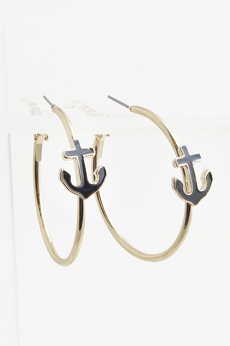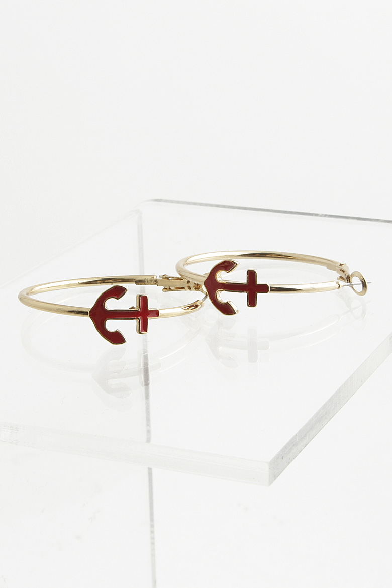 - * Anchor Charm Hoop Earring 4DBH4 * 1.5 x 1.5" approx.