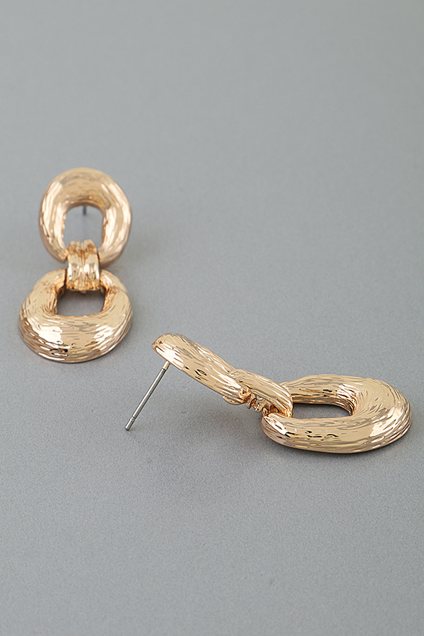 - * Engraved Link Chain Drop Earrings from H&D Accessories feature a bold, chunky link chain design with textured, engraved metal surfaces. The two interlocking oval links create a dynamic, layered drop silhouette, while the reflective, hammered finish adds depth and visual interest. Expertly crafted, these earrings blend industrial-inspired edge with modern sophistication, making them a striking, statement-making addition to any jewelry collection.