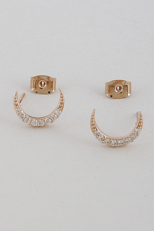 - * Crescent Stud Rhinestone Earrings 7CCE4 * 0.4 x 0.6" approx.