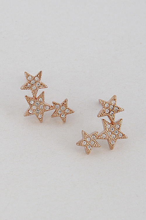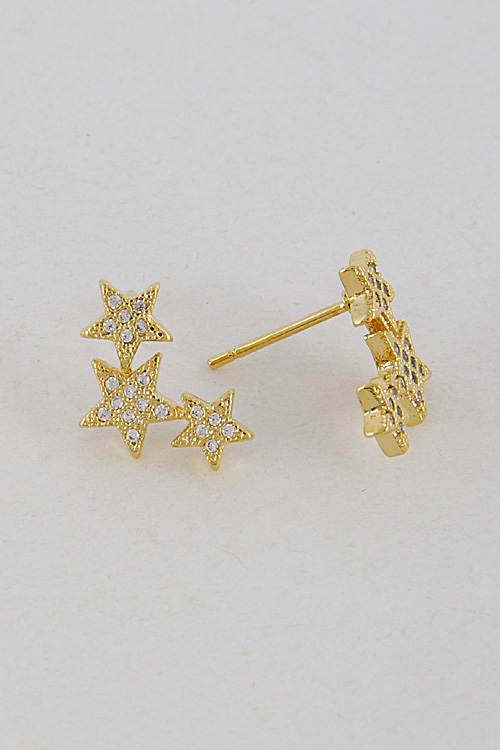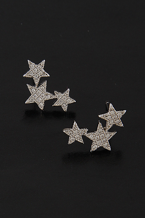 - * Three Linked Stars Rhinestone Stud Earrings 7CCE5 * 0.4 X 0.6" approx.