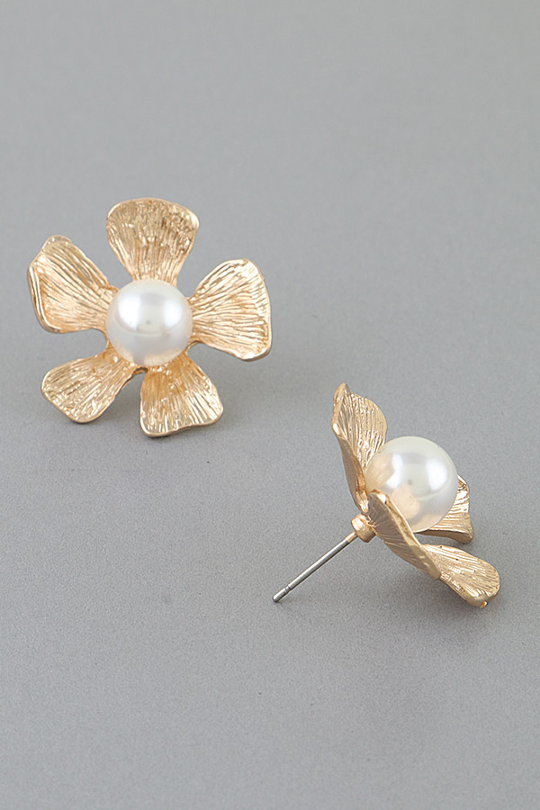 - * These Abstract Engraved Flower Stud Earrings from H&D Accessories feature a delicate five-petal flower design with fine engraved textures on each petal, centered by a lustrous round pearl. Their elegant, nature-inspired style is perfect for adding a refined touch to office attire or complementing a romantic look at dinner dates. Crafted with meticulous detail, they offer both timeless beauty and versatile wearability for any special moment.