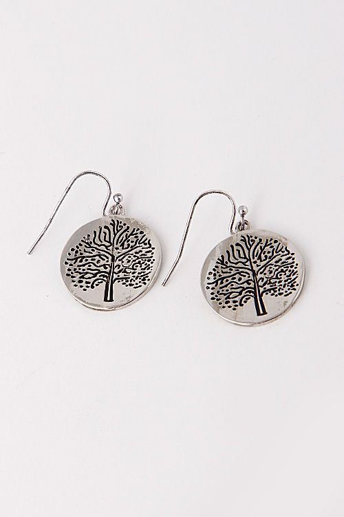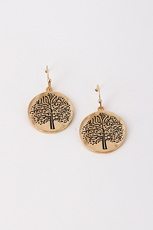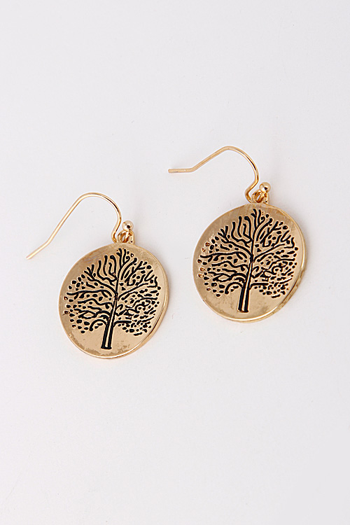 - * Black Tree Imprinted Medallion Dangle Earring 5DBF2 * .75 x 1" approx.