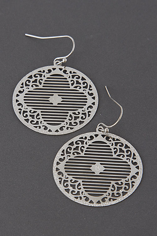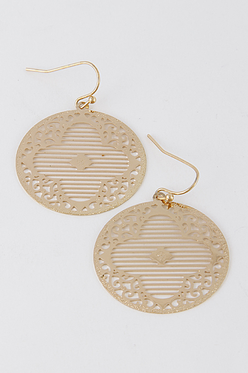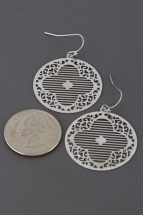 - * Patterned Circle Four Leaf Inspired Hook Earrings 6ICH3 * 1.2 X 1.6" approx.