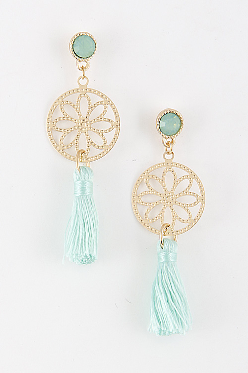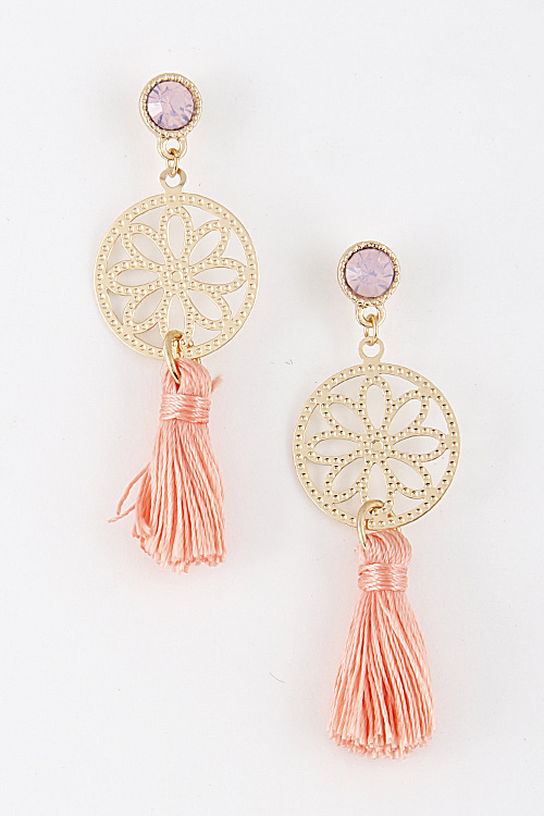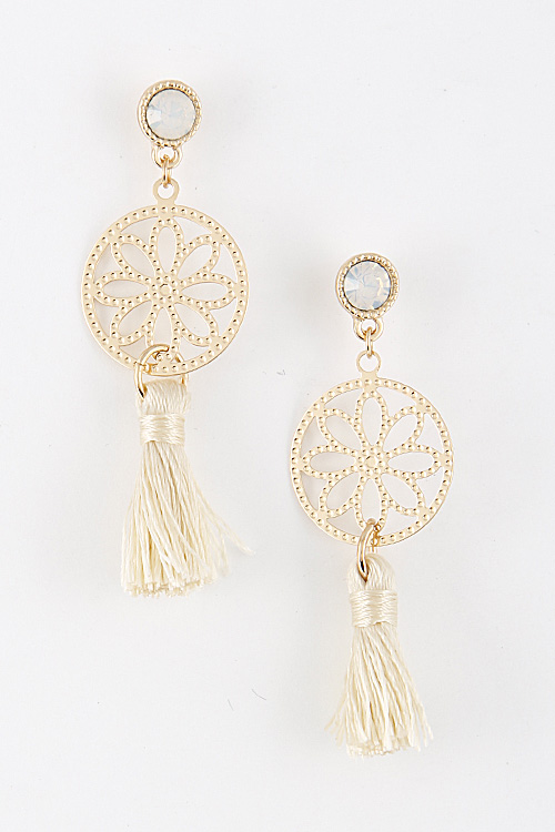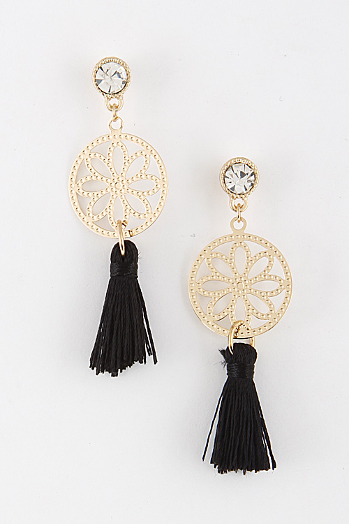 - * Unique Earrings With Flower, Rhinestone, And Tassel 6EAE7 * 0.8 x 2" approx.