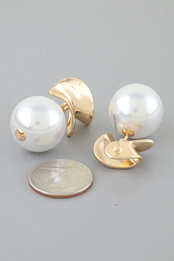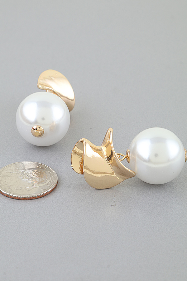 • * Modern Polished Wrap Pearl Stone Earrings from H&D Accessories feature a sleek, sculpted metal wrap design with a large, lustrous pearl drop. The polished metal curves in an elegant, contemporary twist, suspending a smooth, round pearl that adds a refined, eye-catching element. Crafted with attention to detail, these earrings blend modern aesthetics with timeless sophistication, making them a versatile addition to any jewelry collection.