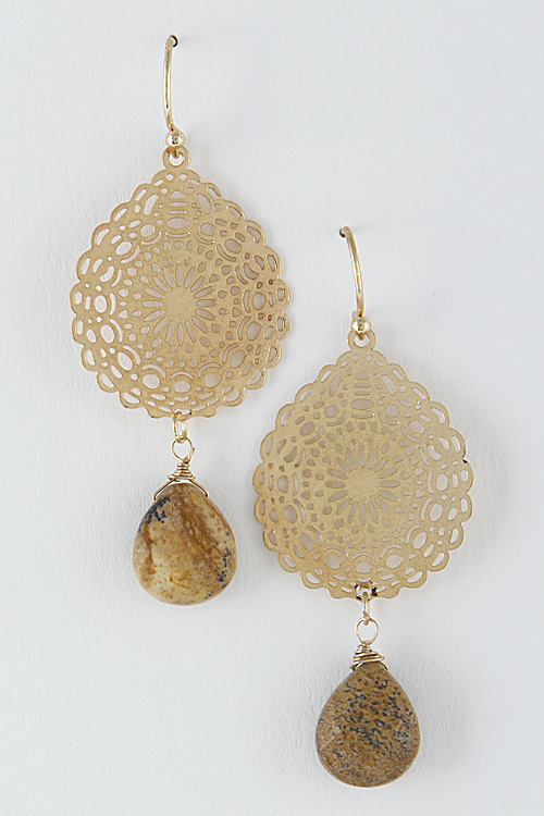 - * Simple Elegant Earrings with Stone Details 6HBH1 * 0.8 x 2" approx.
