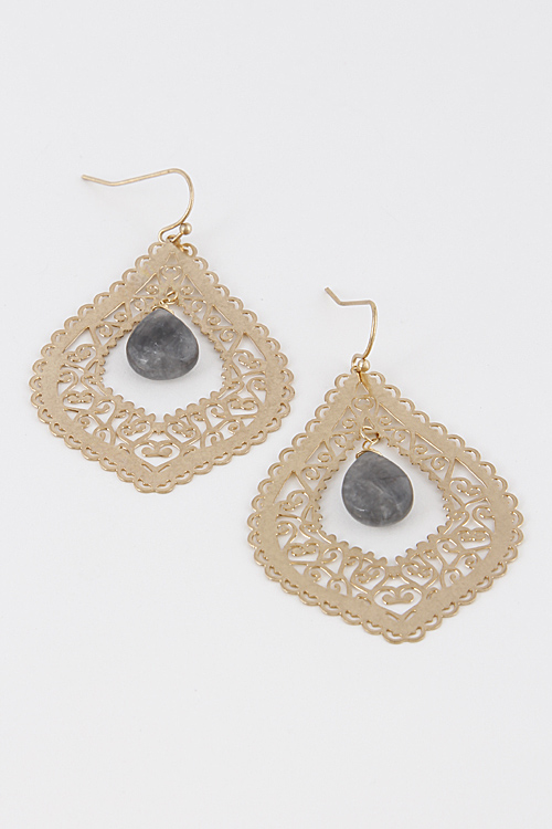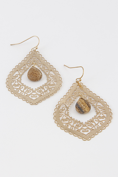 - * Genie Inspired Tear Drop Stone Hook Earrings 6ICG8 * 1.5 x 2.5" approx.