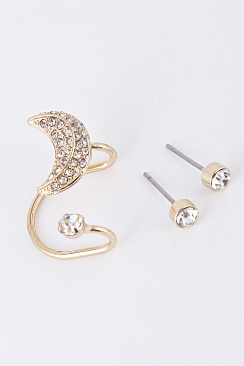 - * Crescent Moon Rhinestone Cuff Stud Earring 5GAJ4 * 1" approx.