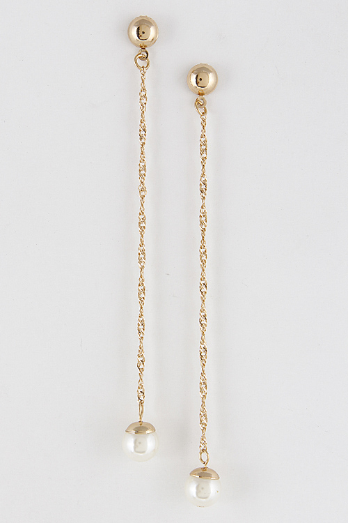 - * Long Bar Line Earring With Faux Pearl 7EAD4 * 4.5" Approx.