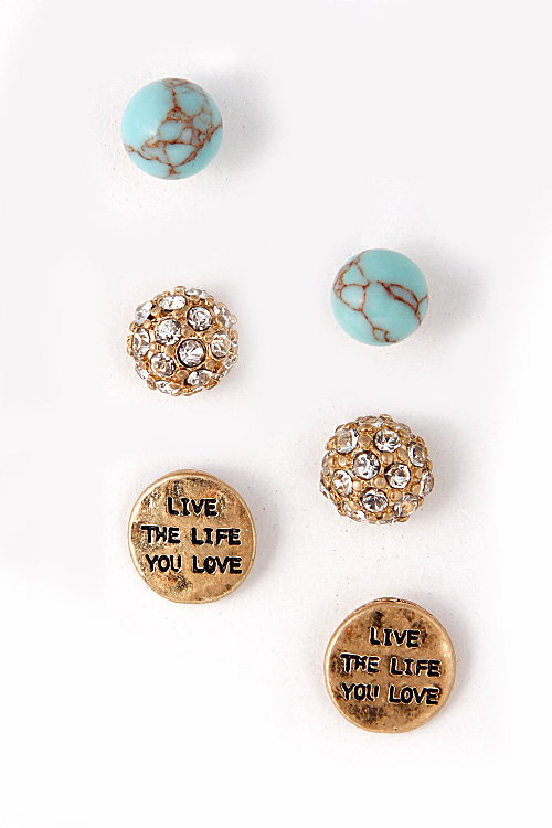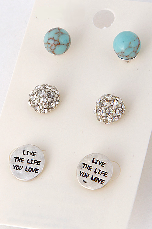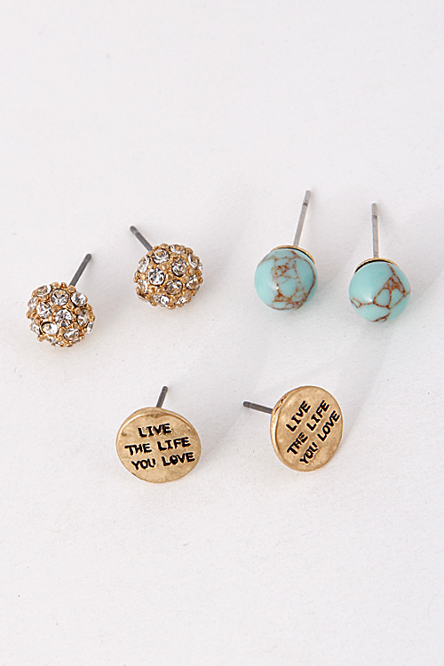 - * Live The Life You Love Stud Set Earring 5DAJ1 * .2 x .2/ .3 x.3/ .3 x .3" approx.