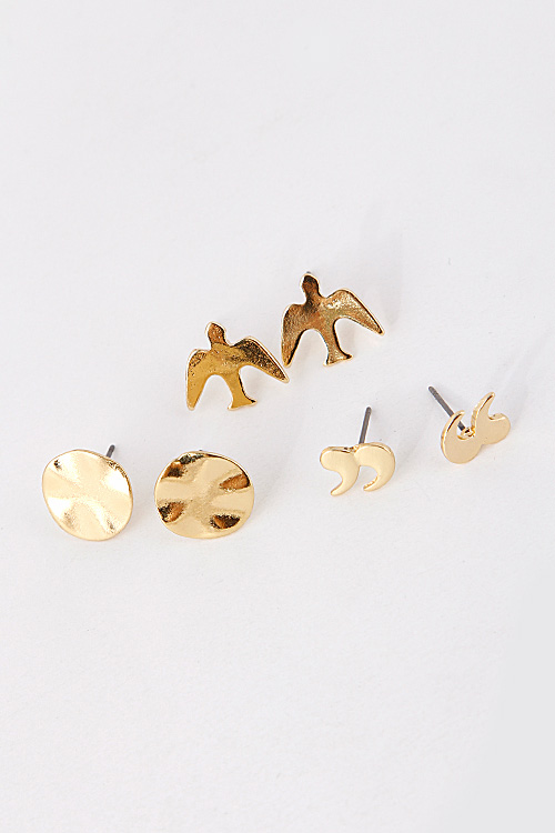 - * Flying Bird Circle Quotation Stud Set Earring 5DAJ3 * .5 x .5/ .4 x .4/ .5 x .5" approx.