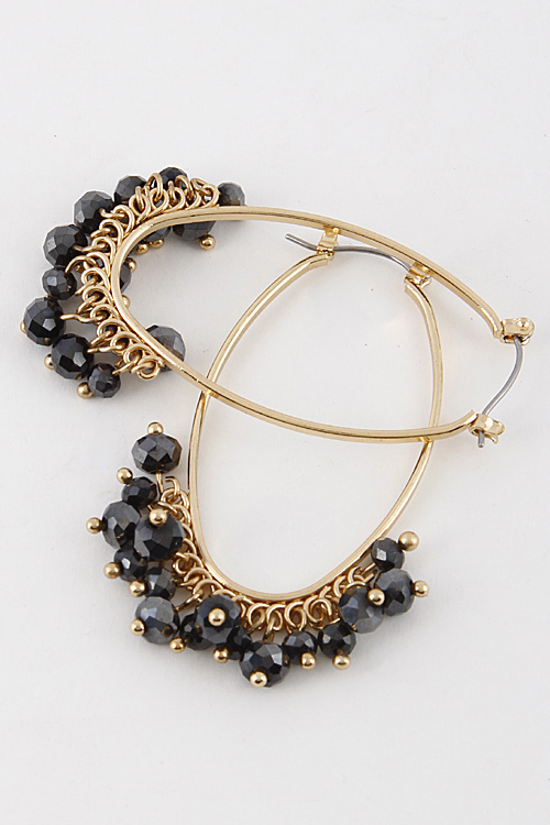 - * Oval Bead Hoop Earrings 6CBH2 * 1 X 2.2" approx.