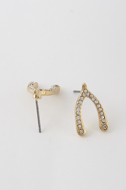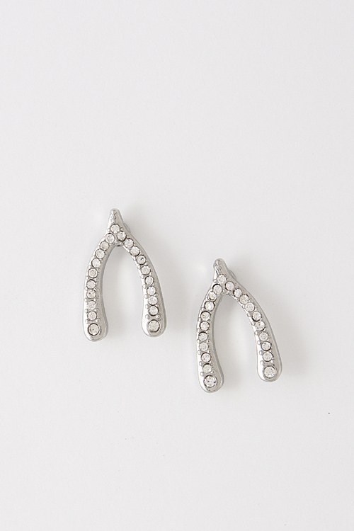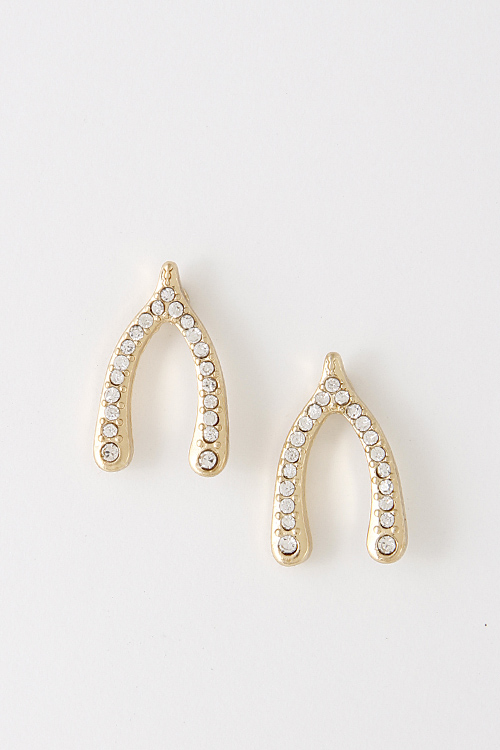 - * Rhinestone Studded Wishbone Stud Earring 5FBH3 * .4 x .75" approx.